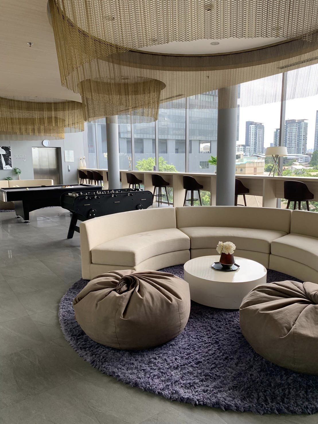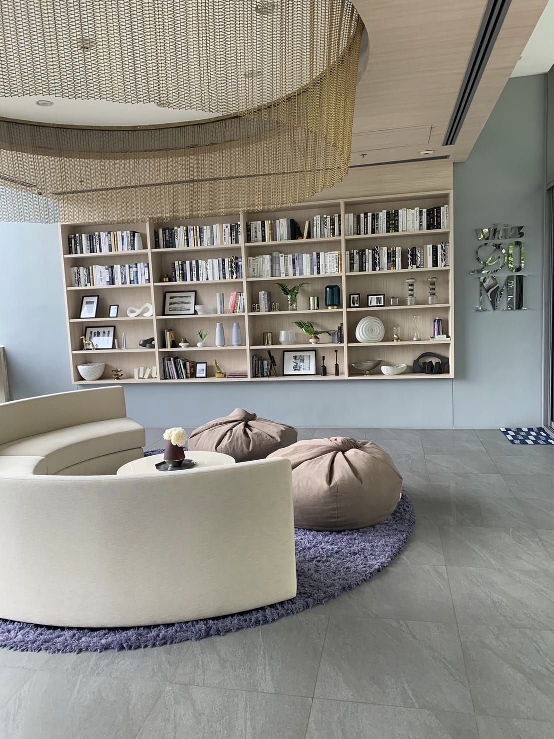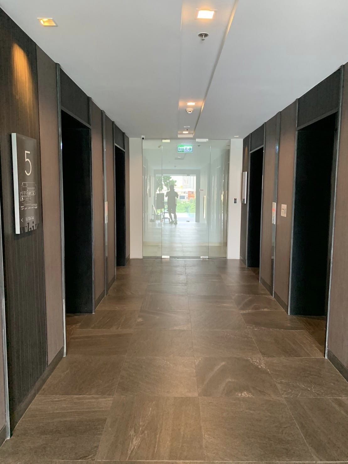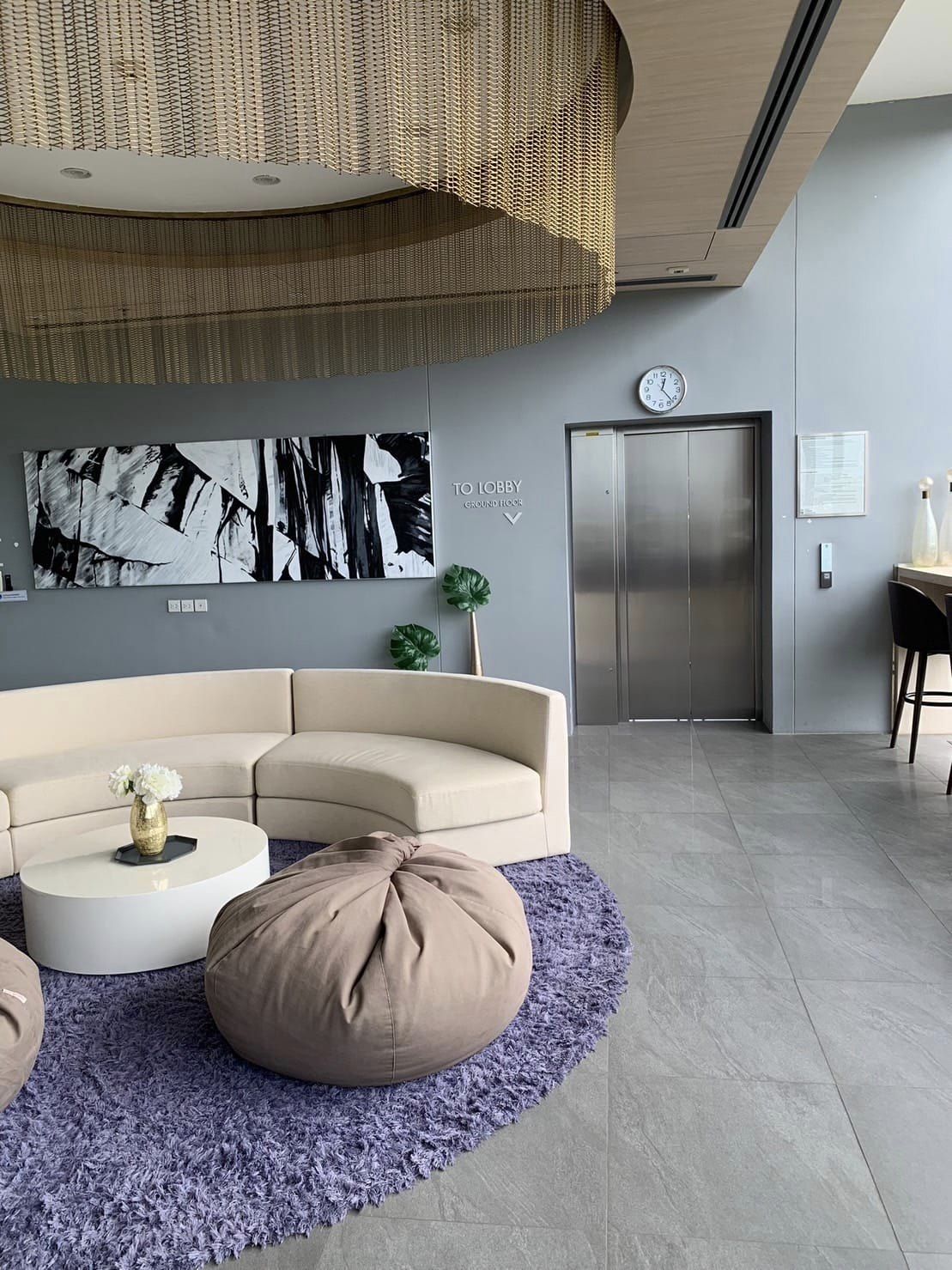 ผังห้องมี ลิฟต์ แก้ว ด้านหน้าไปที่ social lounge ซึ่งเป็นห้องรับแขกกลาง ชั้น 5