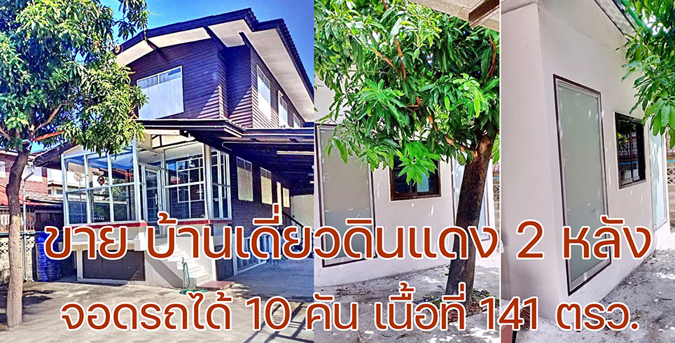 ขาย บ้านเดี่ยวดินแดง 2 หลัง จอดรถได้ 10 คัน บรรยากาศเงียบสงบมาก เนื้อที่ 141 ตรว. ตรว.ละ 100,000 บาท